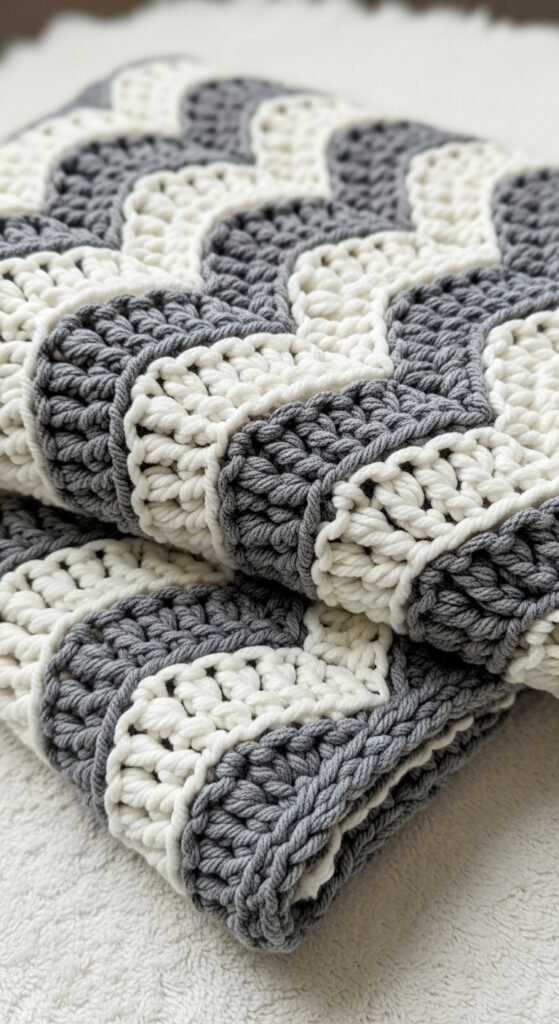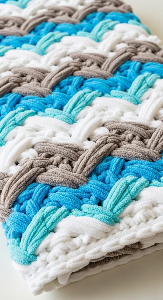 This design screams for color changes. You can create an ombre effect by using different shades of blue, graduating from navy to sky to white. Alternatively, a high-contrast black and white wave creates a modern, graphic look. The “peaks and valleys” of the stitch also create a nice texture that babies love to run their hands over.