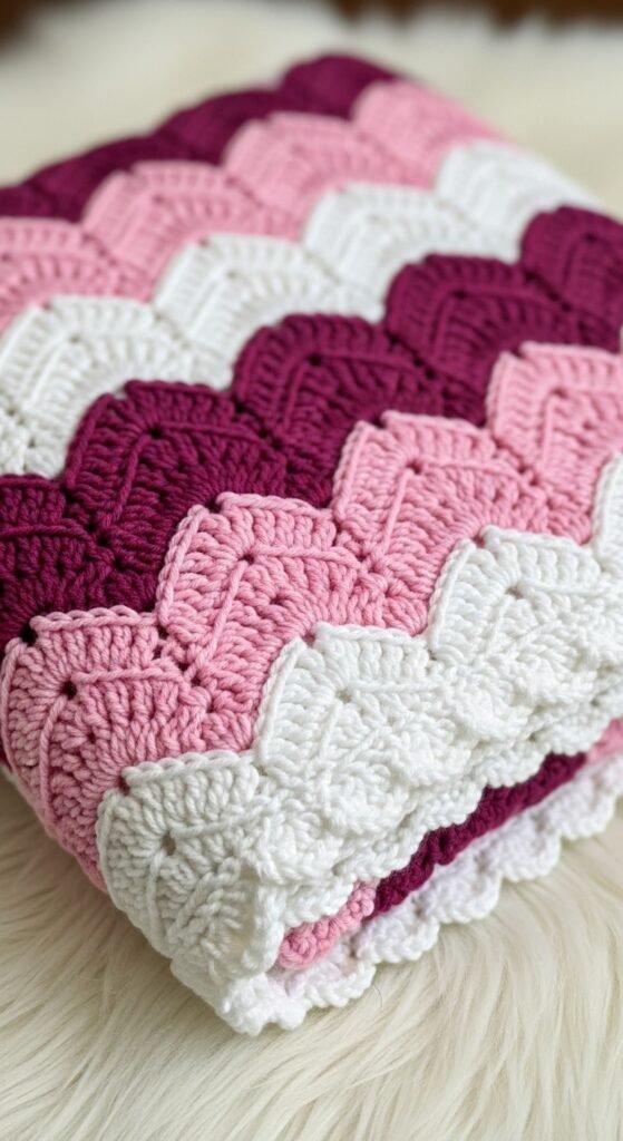 The ripple or wave pattern is a timeless crochet staple. It creates a sense of movement and flow that is very calming. While traditional ripples can be tricky with counting, this version is likely modified for ease and speed. The undulating lines draw the eye across the blanket, making the nursery feel larger and more dynamic.
