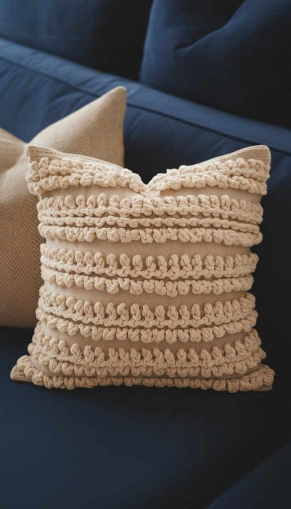 A custom crochet pillow cover is a powerhouse gift that can transform a living room instantly. This item leans heavily into the “Cottagecore” and “Modern Boho” trends. The key here is texture. You want to create a tactile experience, so stitches like the bobble stitch, popcorn stitch, or waffle stitch are excellent choices. A solid-colored pillow with high texture often looks more sophisticated than a multi-colored one, allowing the shadow play of the yarn to act as the primary design element.