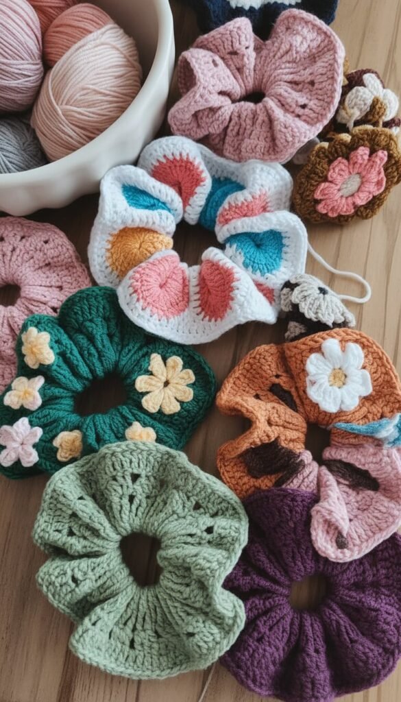 The resurgence of 90s fashion has solidified the scrunchie as a staple accessory, and the crochet version adds a delightful textural twist. Unlike store-bought fabric scrunchies, a crocheted version offers volume and a unique “ruffled” edge that looks stunning in a ponytail or on the wrist. The velvet yarn trend has made this gift particularly luxurious, creating a soft, shimmering effect that catches the light and feels gentle against hair.