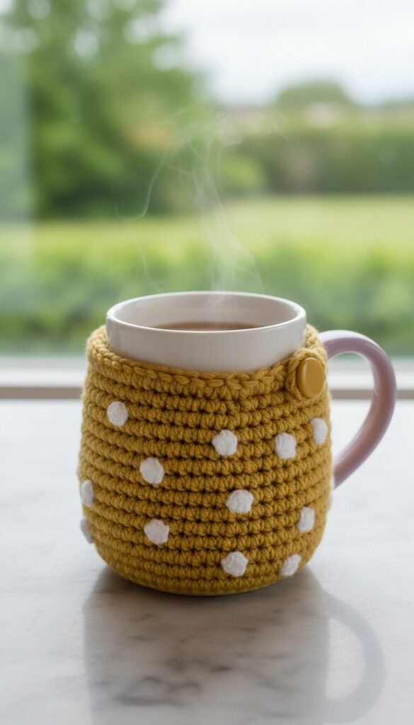 The mug cozy is a small sleeve that wraps around a coffee cup, protecting hands from heat and keeping the beverage warm. It is the quintessential “autumn vibes” gift. Design-wise, it offers a small canvas for personality. You can add buttons, pockets for tea bags, or appliqué hearts and leaves.