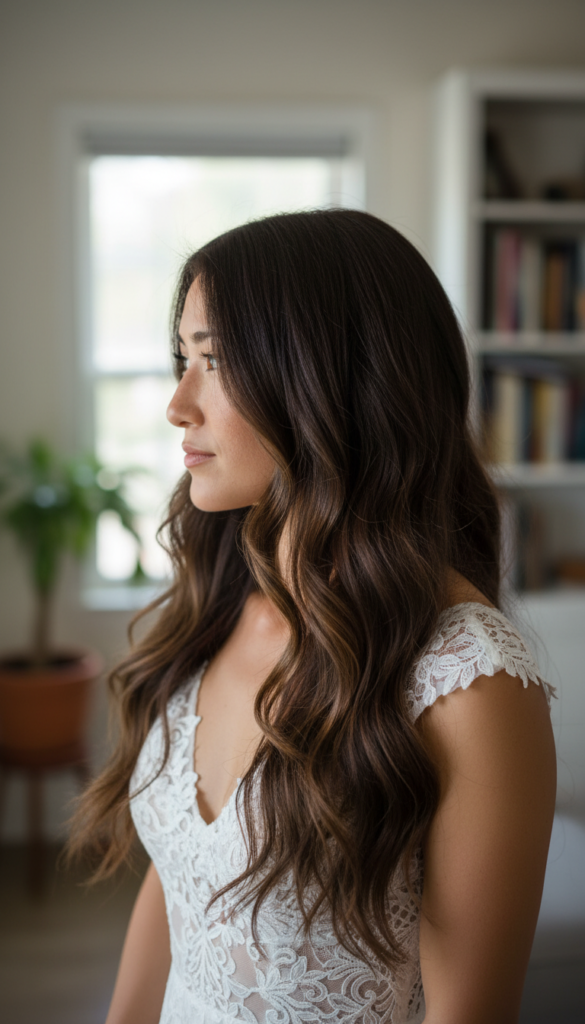 The success of this style relies on the health of the ends. Long wavy hair is prone to dryness, so regular trims are non-negotiable to keep the layers sitting correctly. This cut works best with a center part or a slightly off-center part to maintain symmetry. To style, you can use the “plopping” method with a microfiber towel to encourage wave formation while the hair dries, or use a large-barrel curling wand on random sections to enhance your natural texture. The goal is imperfection; varying the direction of the waves creates a more authentic beachy look.
