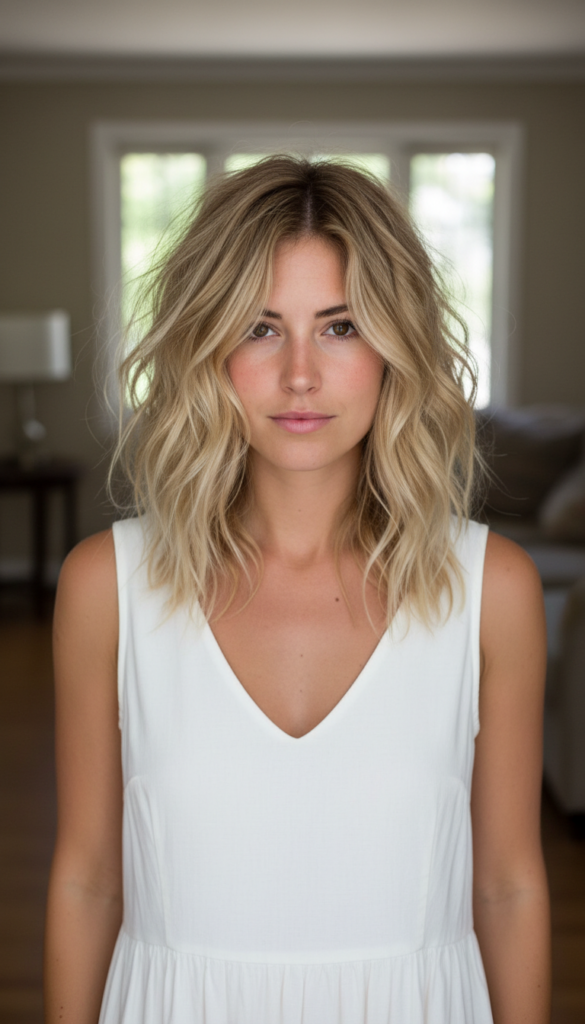 Long beachy waves remain a timeless staple because they universally flatter almost every face shape. This specific variation focuses heavily on face-framing layers that start around the chin and cascade down, blending into the longer lengths. These shorter pieces at the front are crucial for opening up the face and preventing long hair from dragging your features down. The aesthetic is soft, romantic, and undeniably feminine, evoking the feeling of a summer day regardless of the season.