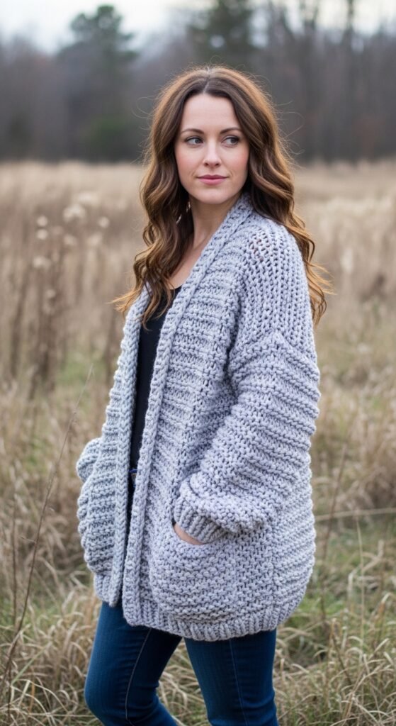 The cocoon cardigan is designed to feel like a warm hug. It features a rounded shape that cups the shoulders and hips, distinguishing it from the sharp angles of a kimono or duster. This style is particularly flattering because it softens the body’s silhouette and provides ample room for layering thick clothes underneath.