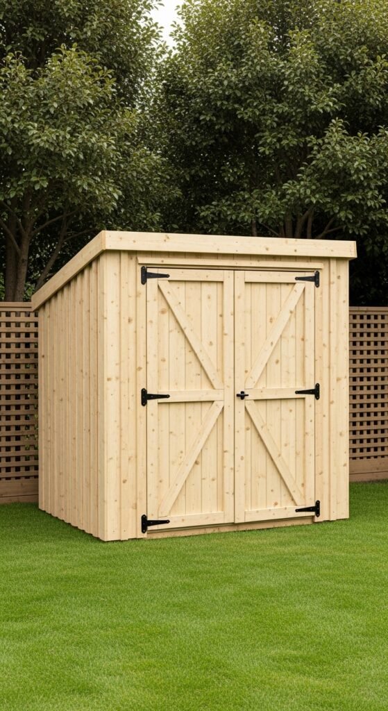 For small urban yards, the Compact Zen Zone offers a retreat without a large footprint. It is often a 6×8 structure with a sliding barn door to save swing space. The aesthetic is clean and modern, often using vertical wood slats to create privacy screens that extend beyond the shed walls.