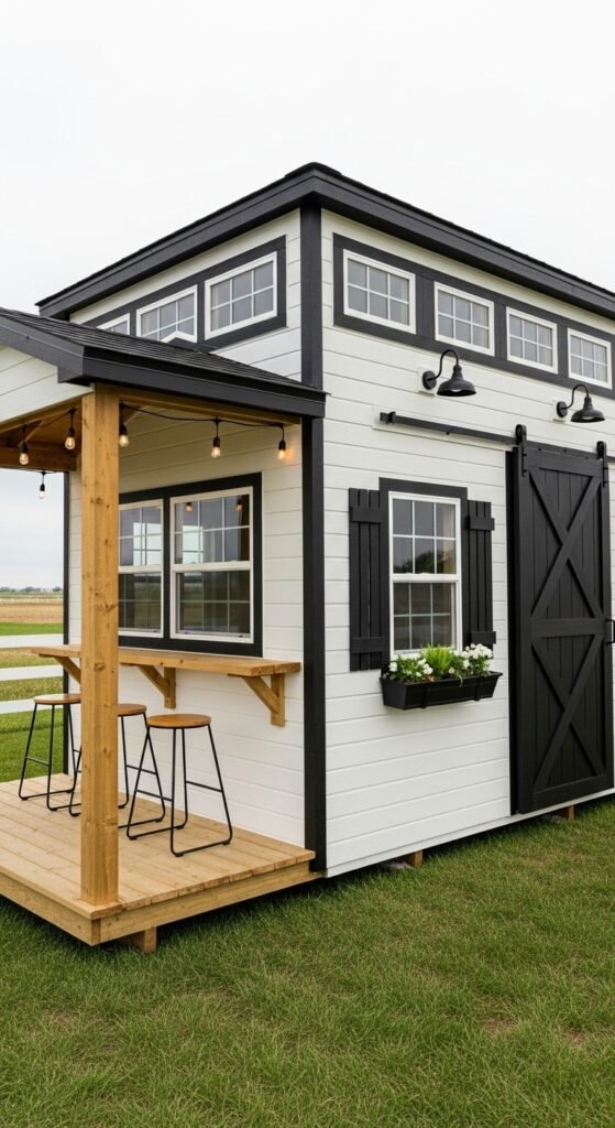 This design breaks the mold with asymmetrical architecture. The roofline might pitch dramatically to one side, or the floor plan might be a trapezoid to fit a quirky corner of the yard. The “twist” often comes from a bold pop of color on the doorโthink electric blue or canary yellowโset against a neutral background. It is a statement piece that says the owner cares about design and isn’t afraid to take risks.