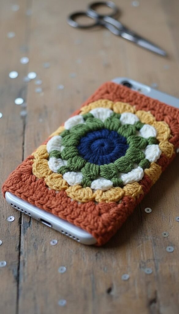 A crochet phone case is a cozy, protective sleeve that keeps your device safe from scratches. The aesthetic is soft and personalized; you can add stripes, flowers, or even embroider your initials on it. It’s a functional accessory that combines tech with tactile comfort. The design is essentially a rectangular pouch, which is very straightforward to execute.
