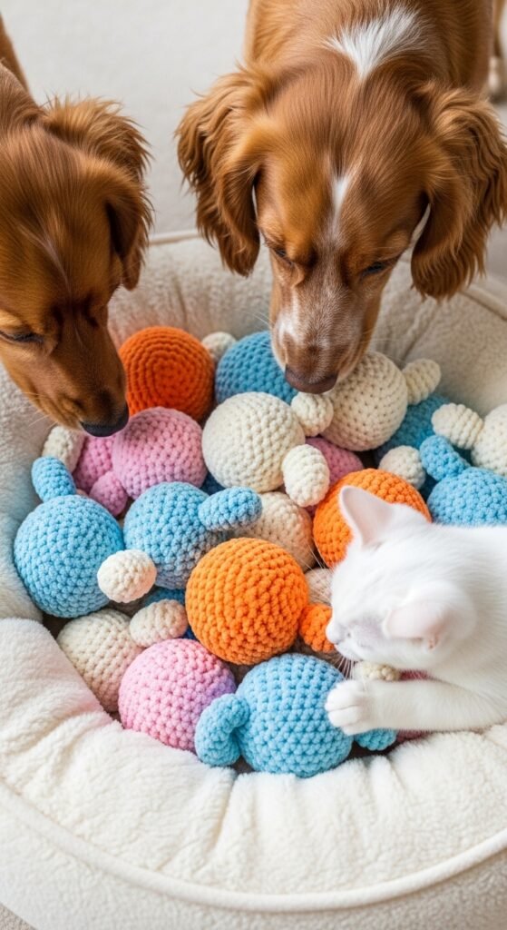 Pet toys are fun, durable, and usually hilarious. A crochet mouse filled with catnip or a small ball for a dog can provide hours of entertainment. The aesthetic is less about perfection and more about durability and fun shapes. Bright colors and high-contrast patterns are great for pets.