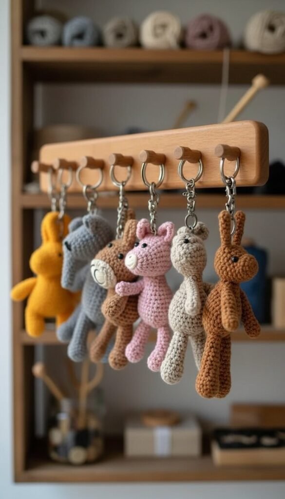 Keychains are the ultimate “instant gratification” project. They are tiny, require very little yarn, and can be highly personalized. Popular designs include boho tassels, mini hearts, or simple wristlet straps. Visually, these add a touch of handmade charm to a handbag or set of keys. They are also fantastic items to sell at craft fairs because they have a low price point and high curb appeal.