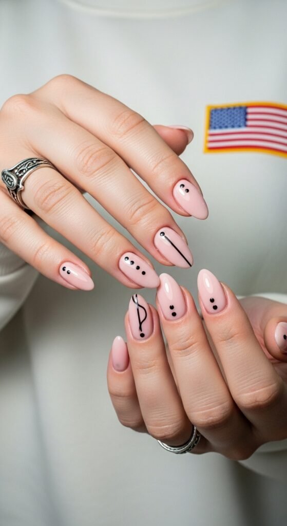 Nude Nails + Black Dots + Dashes