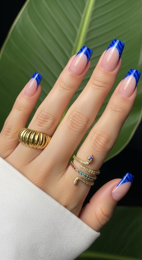 - French Nails + Square Blue Tips