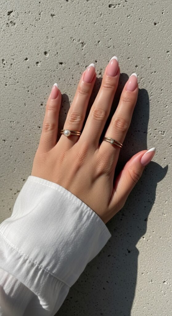 Pro Tip: Use a sheer pink base coat to neutralize any yellowing on your natural nails before painting the tips.