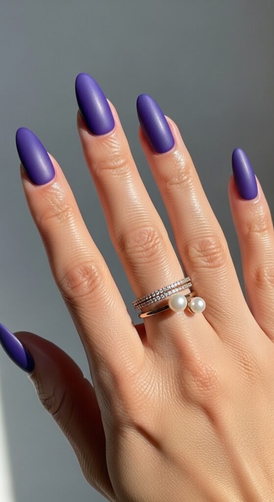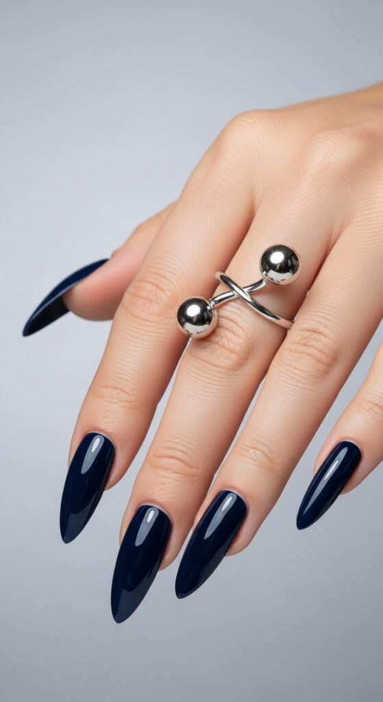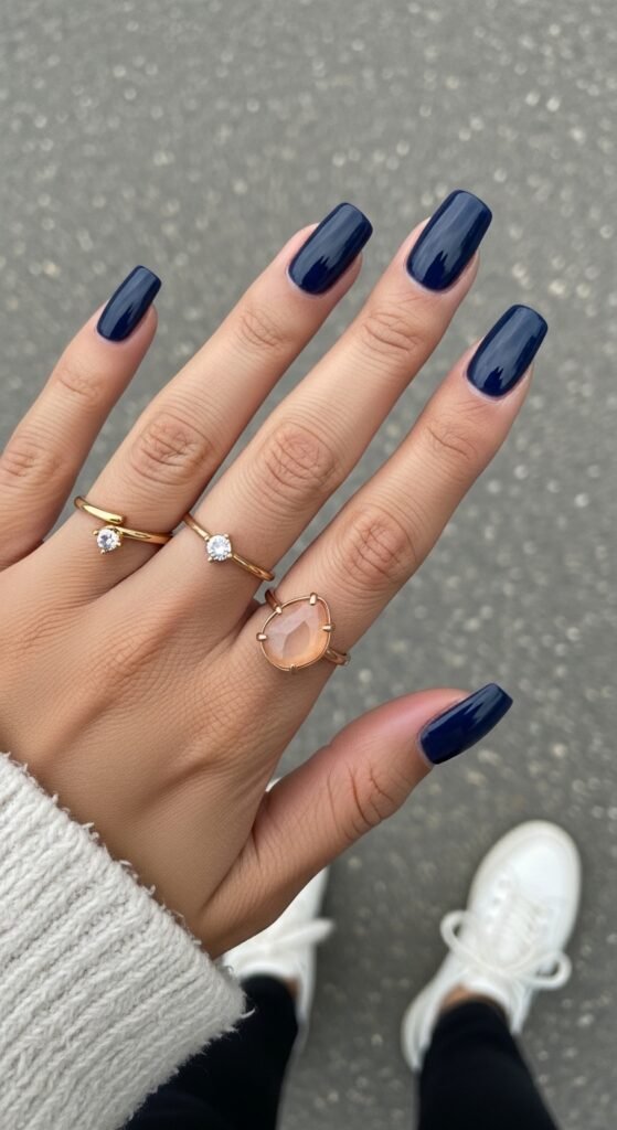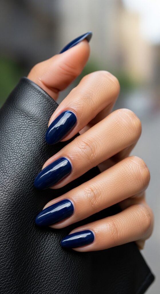 There is nothing quite as sophisticated as a deep navy nail with a matte top coat. This combination absorbs light rather than reflecting it, which turns your nails into a rich, velvet-like accessory. It is an ideal choice for formal events or winter months where you want drama without the distraction of glitter or shine.