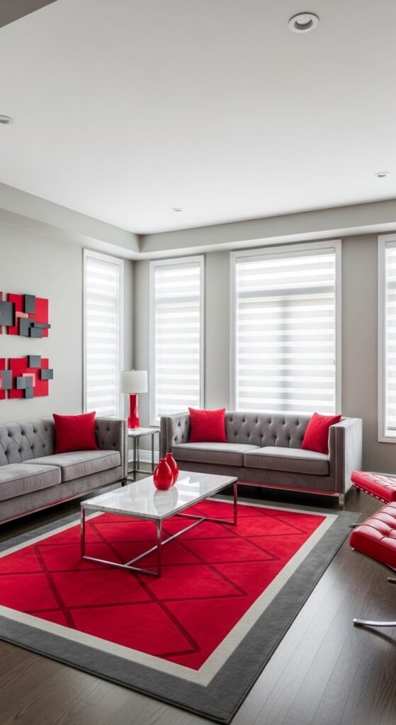 Gray Living Room Ideas with a Pop of Red