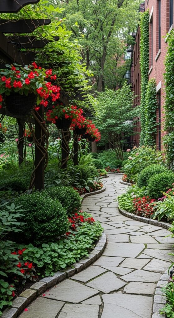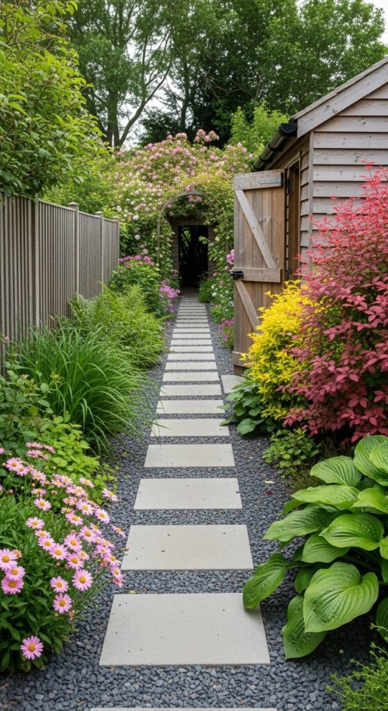 A pathway defines the flow of movement through your garden, inviting exploration. Using pebbles or gravel for a path is an affordable and permeable option that looks organic and chic. Unlike solid concrete, a pebble path allows rainwater to drain through to the soil, preventing runoff issues. The crunch of gravel underfoot also adds a pleasing auditory element to the garden experience.