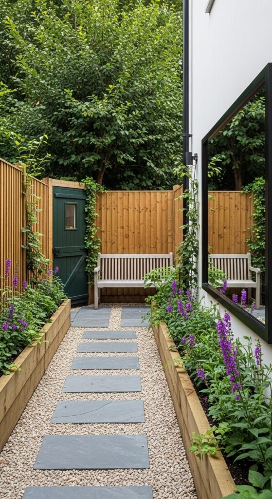 Using mirrors in a garden is a classic designer trick to double the perceived space. A well-placed mirror reflects greenery and light, making a small wall or fence seem like a doorway into another part of the garden. This optical illusion adds depth and intrigue, brightening up dark, shady corners by bouncing sunlight into them.