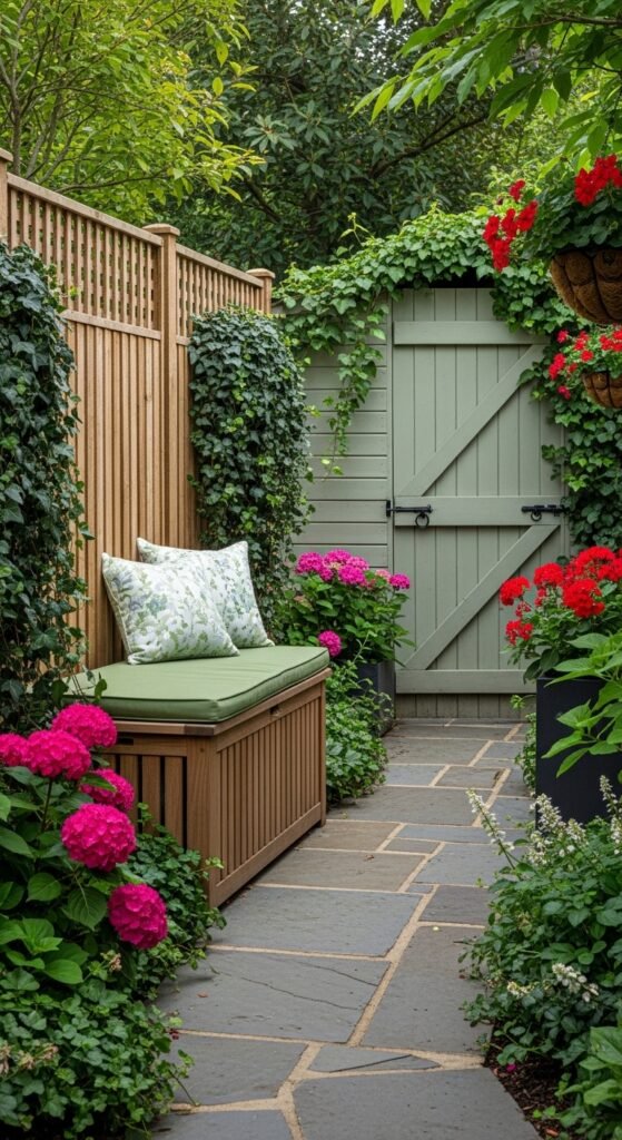 In a small backyard, every piece of furniture must earn its keep. A garden bench with built-in storage is the ultimate multi-functional piece. It provides a comfortable place to sit and enjoy your hard work while hiding away unsightly garden tools, bags of potting soil, or outdoor cushions. This keeps your limited space clutter-free and visually calm.