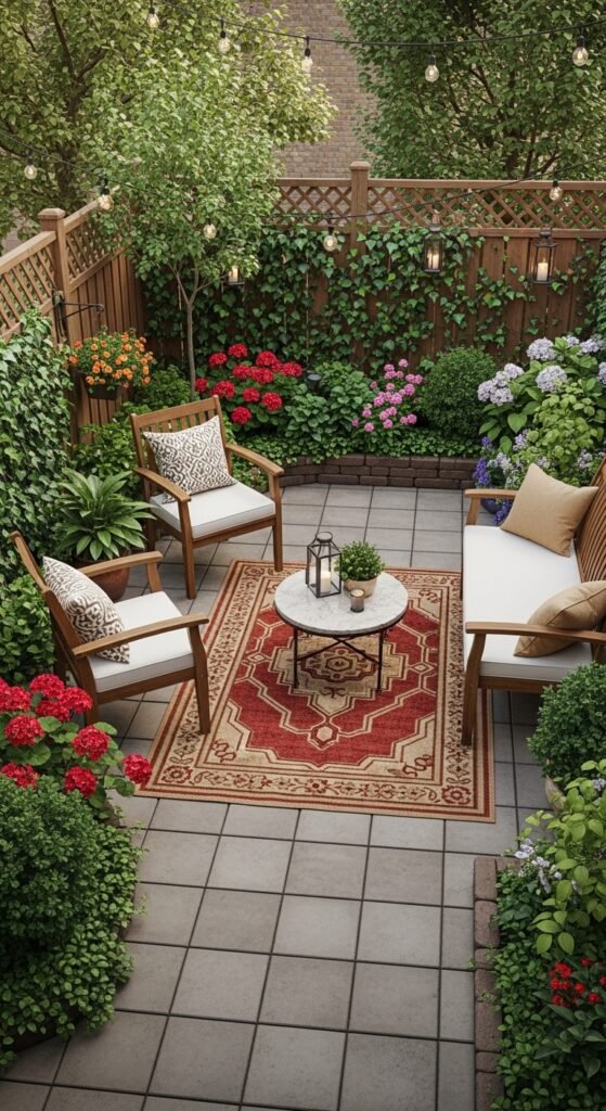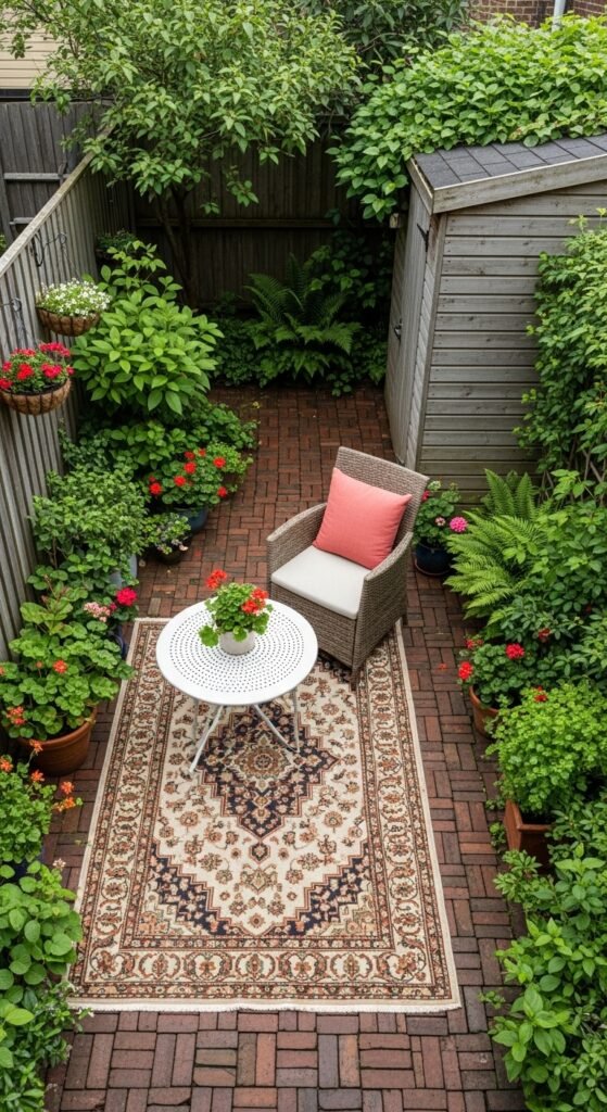 Pro Tip: Place a small outdoor rug under the seating to visually anchor the “room” and separate it from the rest of the garden.