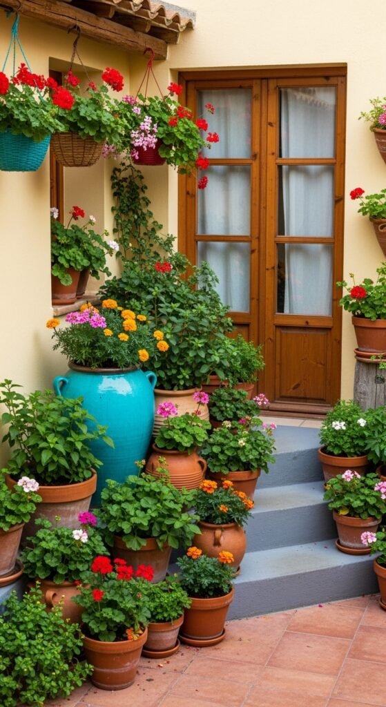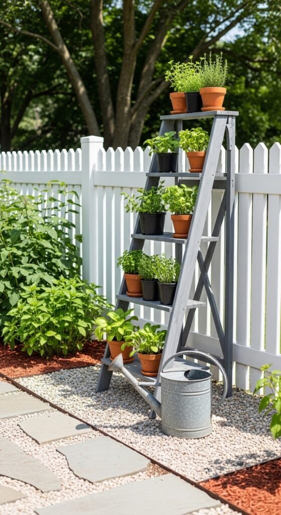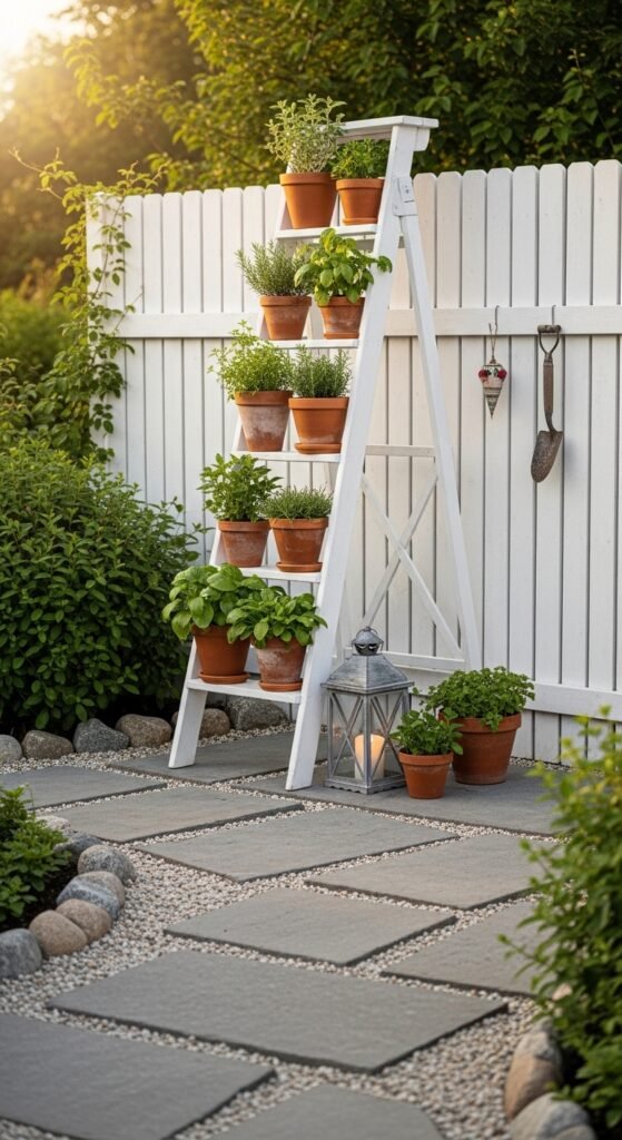 You can upcycle an old wooden stepladder for a vintage, rustic look, or buy a sleek, modern A-frame shelf. This is an ideal spot for an herb collection or a display of succulents. The ladder adds architectural interest and can be moved easily to chase the sun or protect plants from frost.