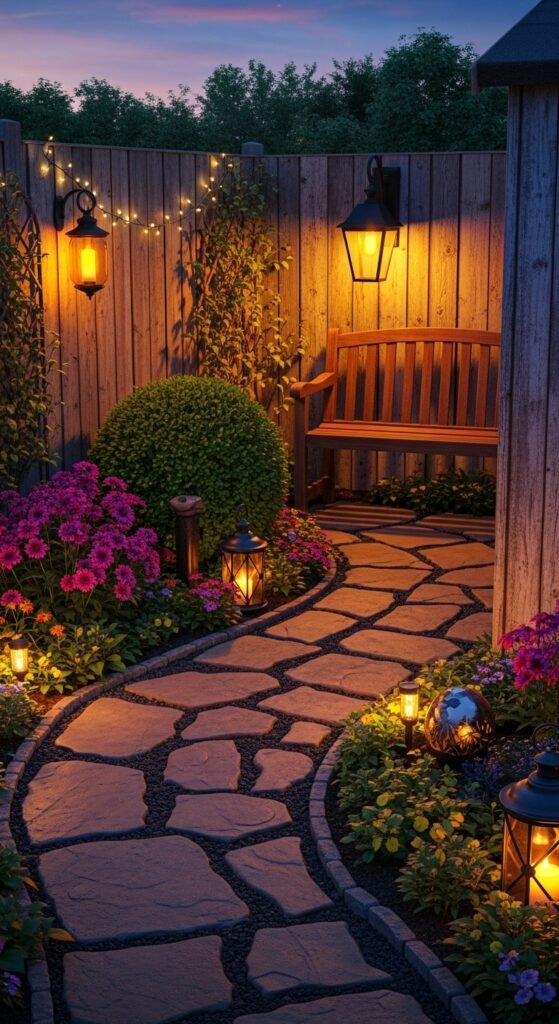 - Lighting Transforms Ambiance: Inexpensive solar string lights or pathway markers can extend the usability of your garden well into the evening.